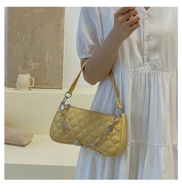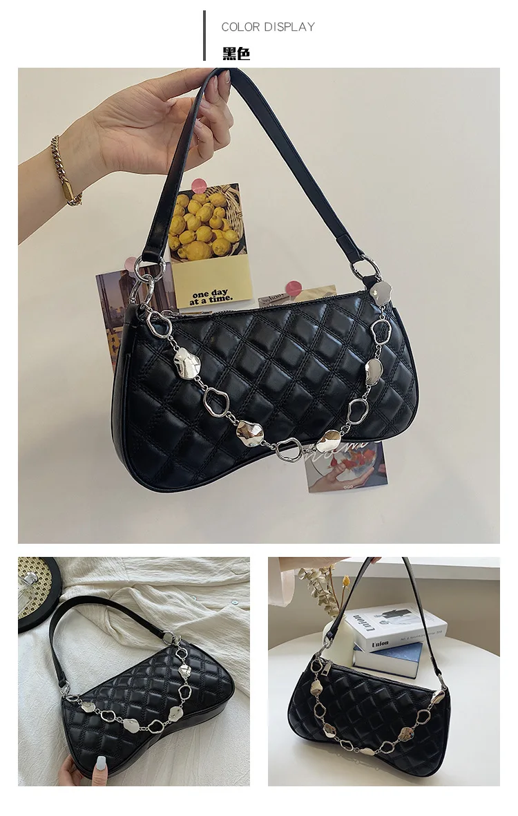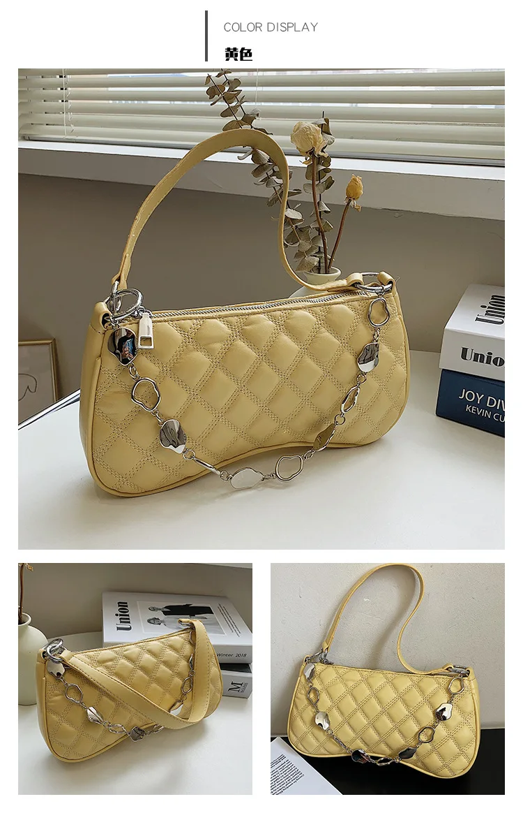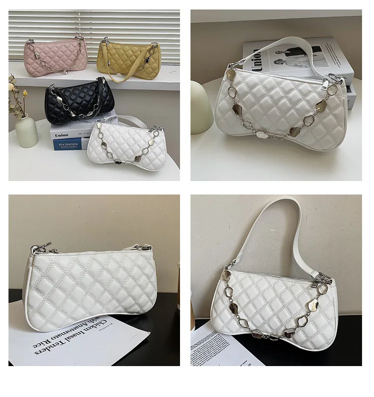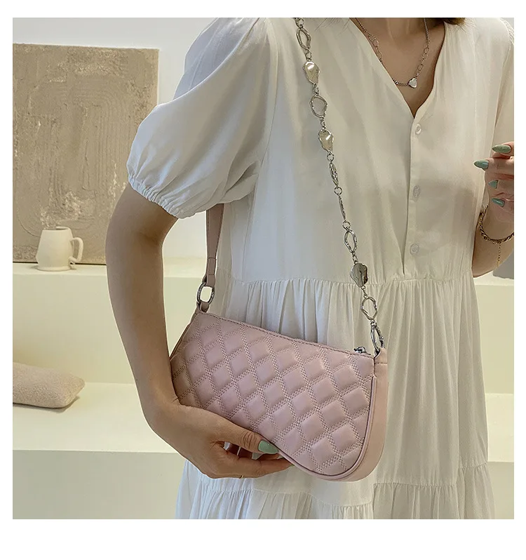 2021년 신상 패션 마름모꼴 언더암 백 핸드백, 심플한 크로스바디 백, 체인 숄더백